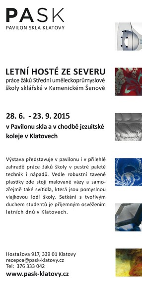Výstava nese název Letní hosté ze severu a je propojením severočeské a západočeské tradice sklářského umění a řemesla. Během zahájení výstavy vytvořili studenti naší školy Martin Jašontek, Kristýna Čadková a Petra Kyselová skleněný objekt "Pocta sklu Lotz" v prostoru před galerií.