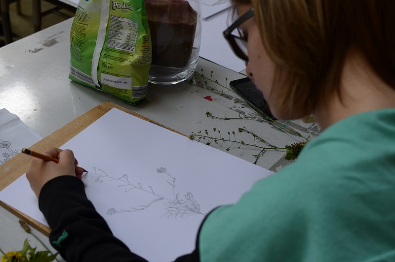 Ani výtvarníkům totiž není lhostejné znečišťování naší planety, které by mohlo značně ovlivnit kvalitu života současné i budoucí generace. Studenti přenesli krásu naší květeny pomocí tuše na papír, a vytvořili tak kreslený herbář. Svůj projektový den začali procházkou v Kamenickém Šenově a okolí. Nasbírali si vzorky polních květin a trav, které jim pak sloužily jako předloha k jejich další činnosti, a to kreslení. Detailně si jednotlivé rostliny prohlédli a pokusili se o jejich výtvarné zpracování nejprve tužkou a potom tuší. Dále se v počítačové učebně snažili pomocí různých webových stránek o přesné určení názvu rostliny a jejího krátkého popisu. Nakonec se veškeré černo-bílé obrázky nafotili a v programu Fotoshop je studenti podle potřeby upravili a opatřili je nejdůležitějšími informacemi o jednotlivých rostlinách. Výstupem projektu se tedy stal tištěný herbář, který zmapoval flóru Kamenickošenovska. Tento projektový den připomněl studentům nutnost ochrany životního prostředí a zároveň bude jeho výstup – kreslený herbář – prezentován v září 2017 na setkání v Kroměříži, kde se letos sejdou zástupci všech českých škol, sdružených ve společenství UNESCO, do něhož byla i naše 160 let existující škola zařazena.