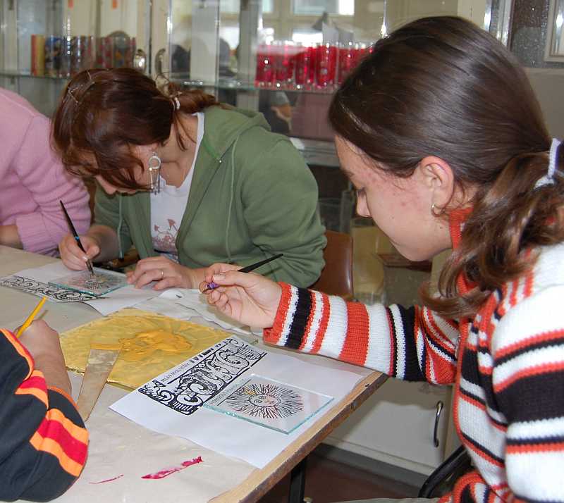 On Nov. 22, 2007 there was held a workshop for a group of children from the primary school Kamenický Šenov in our school. The children were accompanied by their headmaster Mrs. Hana Svobodová. The event was very successful. The group of 24 children was divided into three smaller ones. During the morning they visited three workshops - cutting, painting and engraving, where they could - headed by our workshop masters and by students of our school - try some glassmaking techniques and manufacture their first glass piece. A similar workshop was organized by our school already for a primary school from Nový Bor. The event followed the Open Door Day and has been related to our aim to open our school for the public. We do believe it can stimulate the interest in studying at our school.